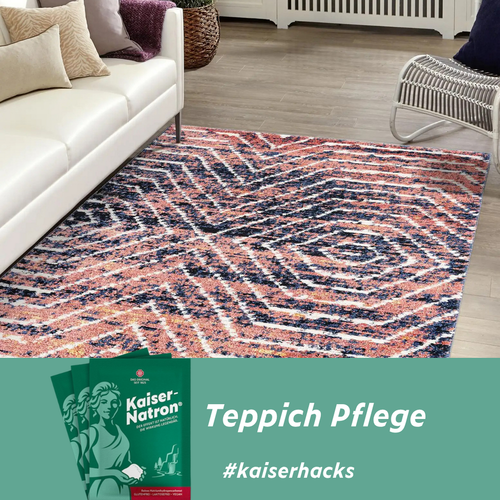 Teppiche sorgen in einem Zuhause für viel Gemütlichkeit und haben viele andere gute Eigenschaften. Nur das Reinigen gestaltet sich hier und da ein bisschen schwierig, da nicht alle Teppiche in die Waschmaschine können und passen. Bei verlegten Teppichböden erübrigt sich ein Waschgang in der Maschine sowieso. Selbstverständlich können alle Teppiche abgesaugt werden, aber ein Staubsauger kann auch keine Gerüche entfernen. Das kann aber unser Alleskönner Kaiser-Natron®. Zur Teppichreinigung, Fleckentfernung und Geruchsneutralisierung streust Du Kaiser-Natron® auf Deinen Teppich und lässt es für mehrere Stunden oder über Nacht einwirken. Flecken kannst Du mit einem feuchten Tuch bearbeiten (zunächst an einer verdeckten Stelle einen Farbtest machen). Anschließend saugst Du den Teppich gründlich ab. Zur kleinen Auffrischung zwischendurch eignet sich auch unser Raum-Erfrischer.